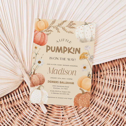 A Little Pumpkin Invitation, Fall baby shower invitation