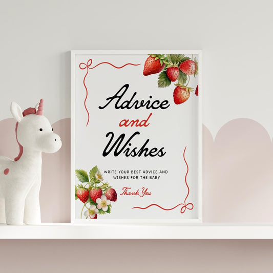 Advice and Wishes Baby Shower Sign | Strawberry Baby Shower Sign