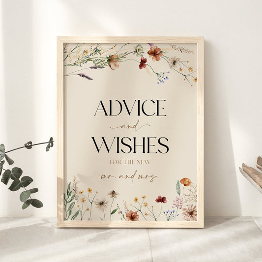 Advice and Wishes Sign, Boho Floral Advice sign template, Bridal Shower Advice and Wishes sign