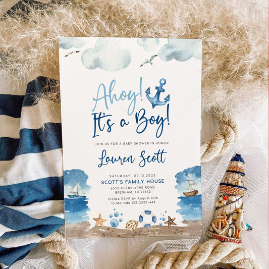 Ahoy It's a boy invitation | Editable Nautical Baby Shower Invitation